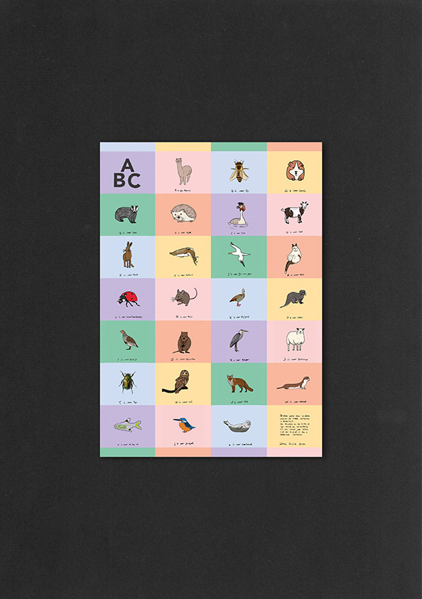 Een poster met dieren van A-Z. De meeste dieren komen voor in Nederland. Verkrijgbaar op A2 (€15,-) of A3 (€10,-), verkrijgbaar in de shop of stuur mij een bericht © 2021
