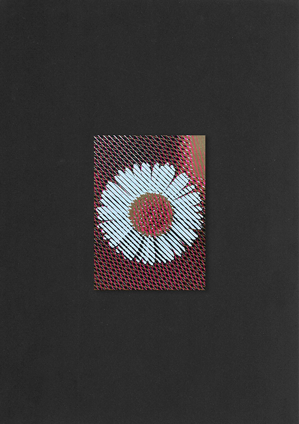 Ansichtkaarten met bloemen gedrukt in zwart, fluor roze en metallic gold. Te koop in de shop voor €2,75 per kaart of 10 euro voor alle 4. © 2022
