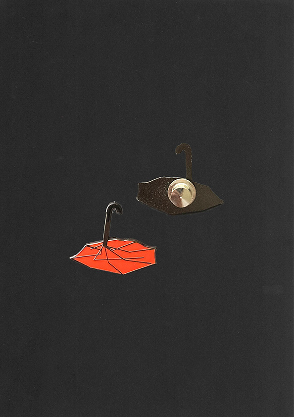 Een hard emaillen pin van een van de weertje weer parapluutjes Te koop in de shop voor €7,- © 2021