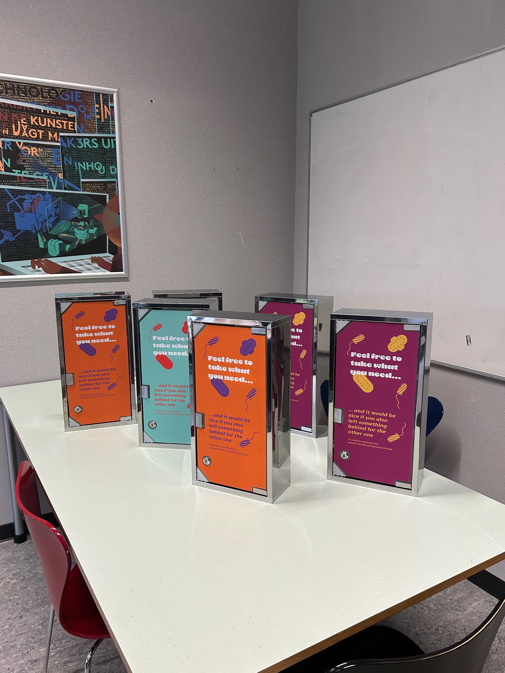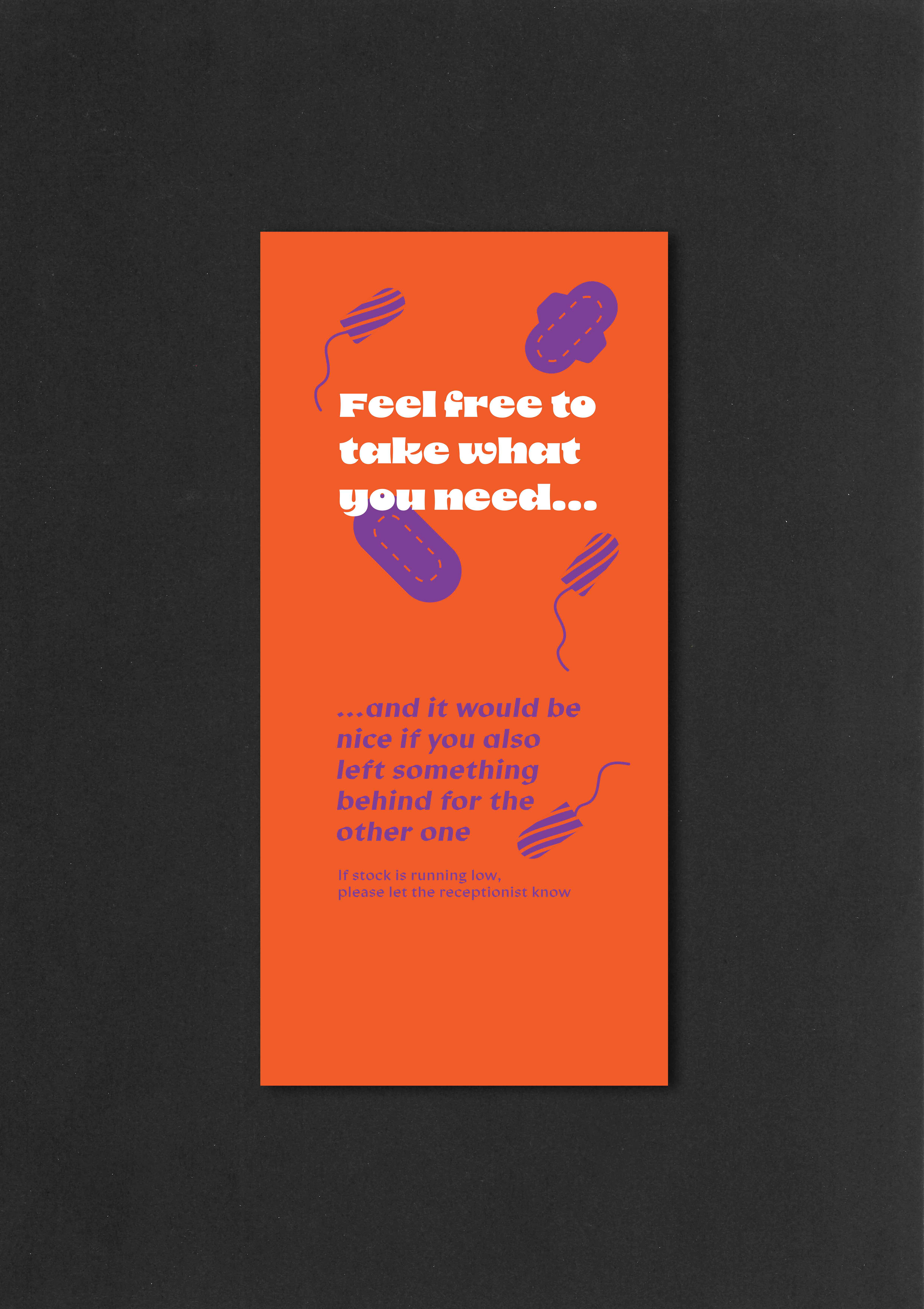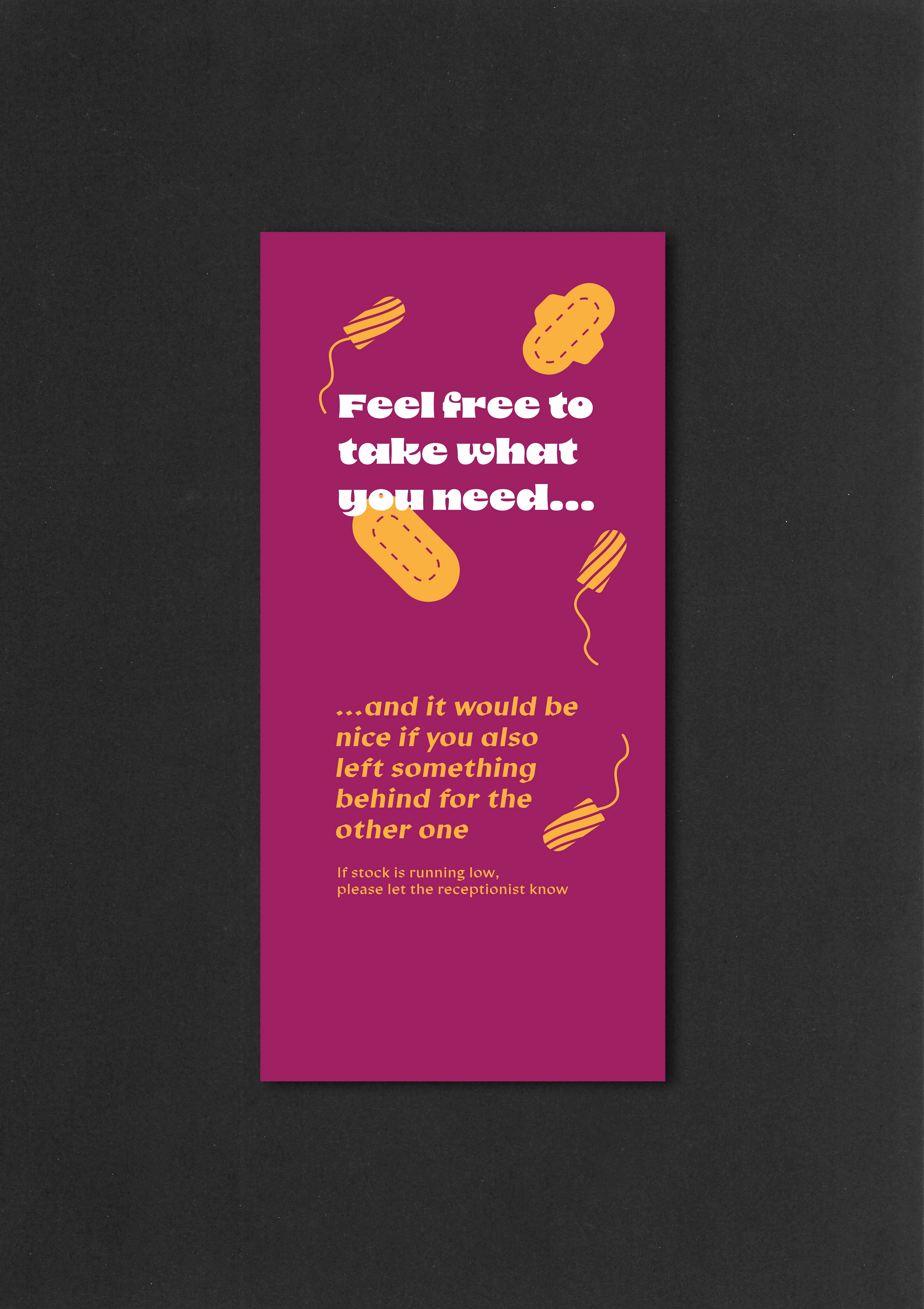 In opdracht van Farida Ayojil ontwierp ik een opdruk voor kastjes met gratis menstruatie producten voor op de wc's van de hku. Deze waren altijd al gratis te krijgen bij de recepties van de hku, maar dit is een stap om het nog toegankelijker te maken. © 2025